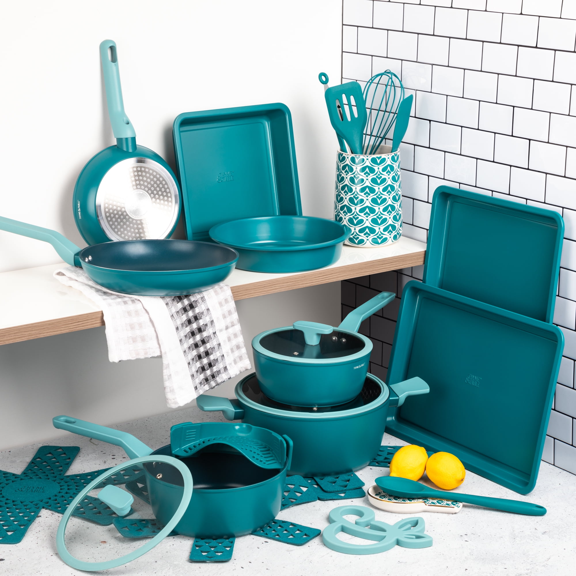 Thyme Table 25 Piece Cookware Bakeware Nonstick Set With Accessories Peacock Blue Walmart Com